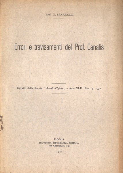 Errori e travisamenti del Prof. Canalis | Libri antichi e moderni | Prof. G. Sanarelli