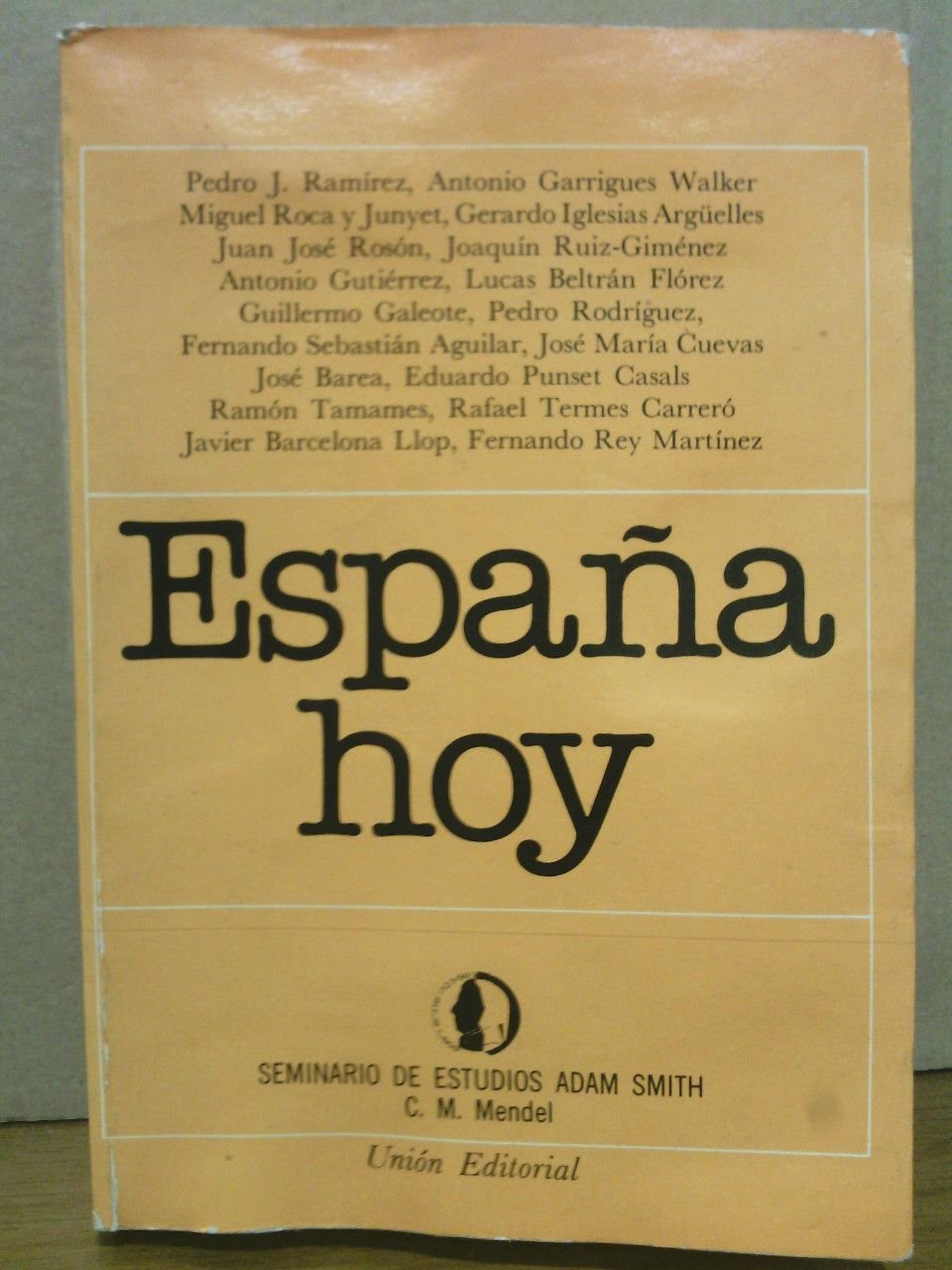 España Hoy. (Seminario de Estudios Adam Smith. C. M. Mendel) / Prol. de Carlos Sanchez Olea; COLABORAN: Gerardo Iglesias; Juan J. Rosón; J. Ruiz-Jimenez; Antonio Gutierrez; Lucas Beltrán; Guillermo Galeote; Pedro Rodriguez; F. Sebastián Aguilar; José María Cuevas; José Barea; Eduardo Punset; Ramón Tamames; Rafael Termes; Javier Barcelona; Fernando Rey