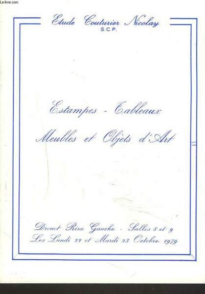 ESTAMPES. TABLEAUX. MEUBLES ET OBJETS D'ART. 22 ET 23 OCTOBRE 1979. | Libri antichi e moderni | Etude Couturier Nicolay