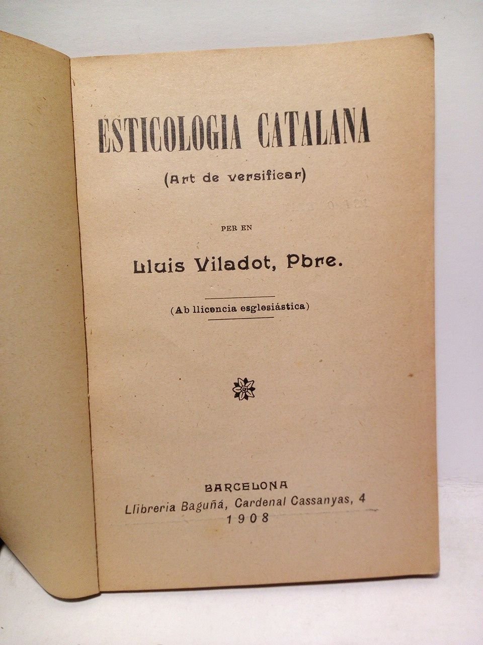 Esticologia catalana. (Art de versificar) | Libri antichi e moderni | Viladot, Lluis. Pbre.