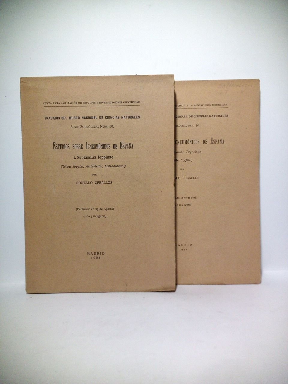 Estudios sobre Icneumónidos de España. I.: Subfamilia Joppinae (Tribus Joppini, Amblytelini, Listrodromini). II.: Subfamilia Cryptinae (Tribu Cryptini). [2 TOMOS] | Libri antichi e moderni | Ceballos, Gonzalo