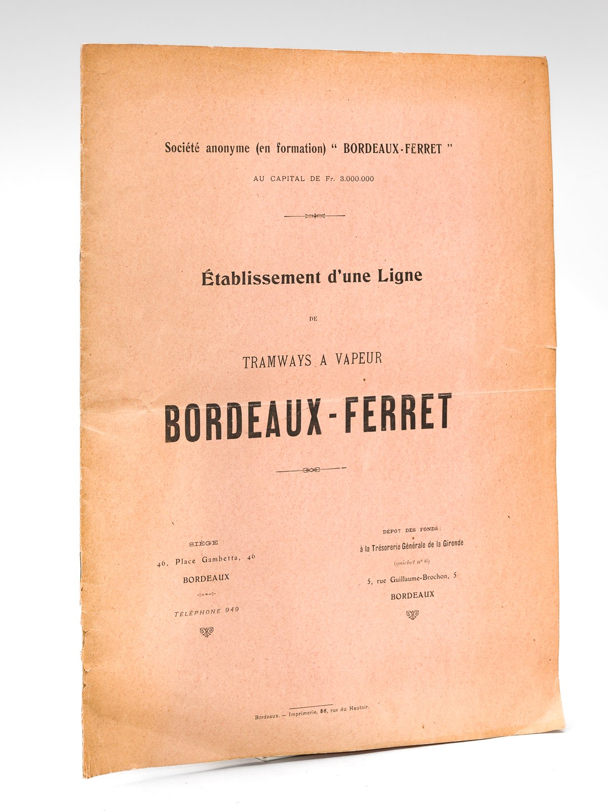 Etablissement d'une ligne de tramways à vapeur Bordeaux-Ferret | Libri antichi e moderni | Collectif, Société Anonyme (En Formation) "Bordeaux-Ferret" Au Capital De F, R. 3.000.000.000, (Duprat, Alfred, Hebert, M., Bailby, M.)