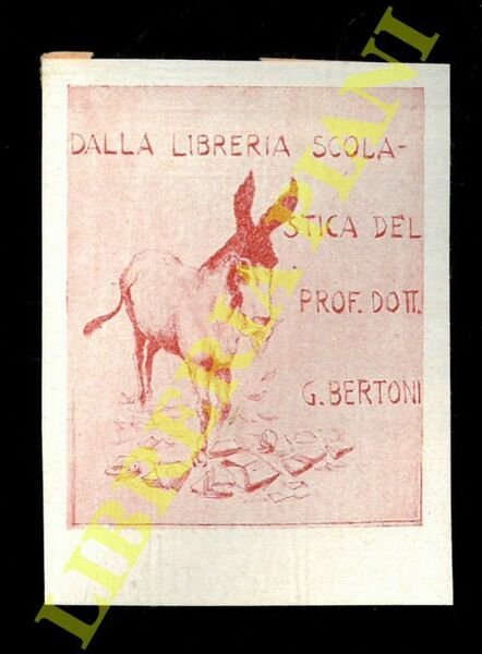 Ex libris : Libreria scolastica del Dott. Prof. Bertoni G. (Un somarello circondato da libri). | Libri antichi e moderni |