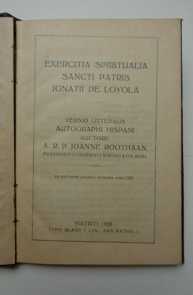 EXERCITIA SPIRITUALIA SANCTI PATRIS IGNATII DE LOYOLA. Versio litteralis autographi hispani. | Libri antichi e moderni | Ignacio De Loyola