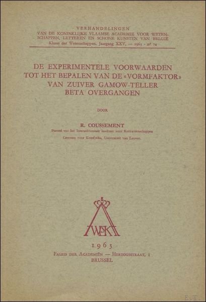 experimentele voorwaarden tot het bepalen van de vormfaktor van zuiver Gamow-teller beta overgangen. | Libri antichi e moderni | R. Coussement.
