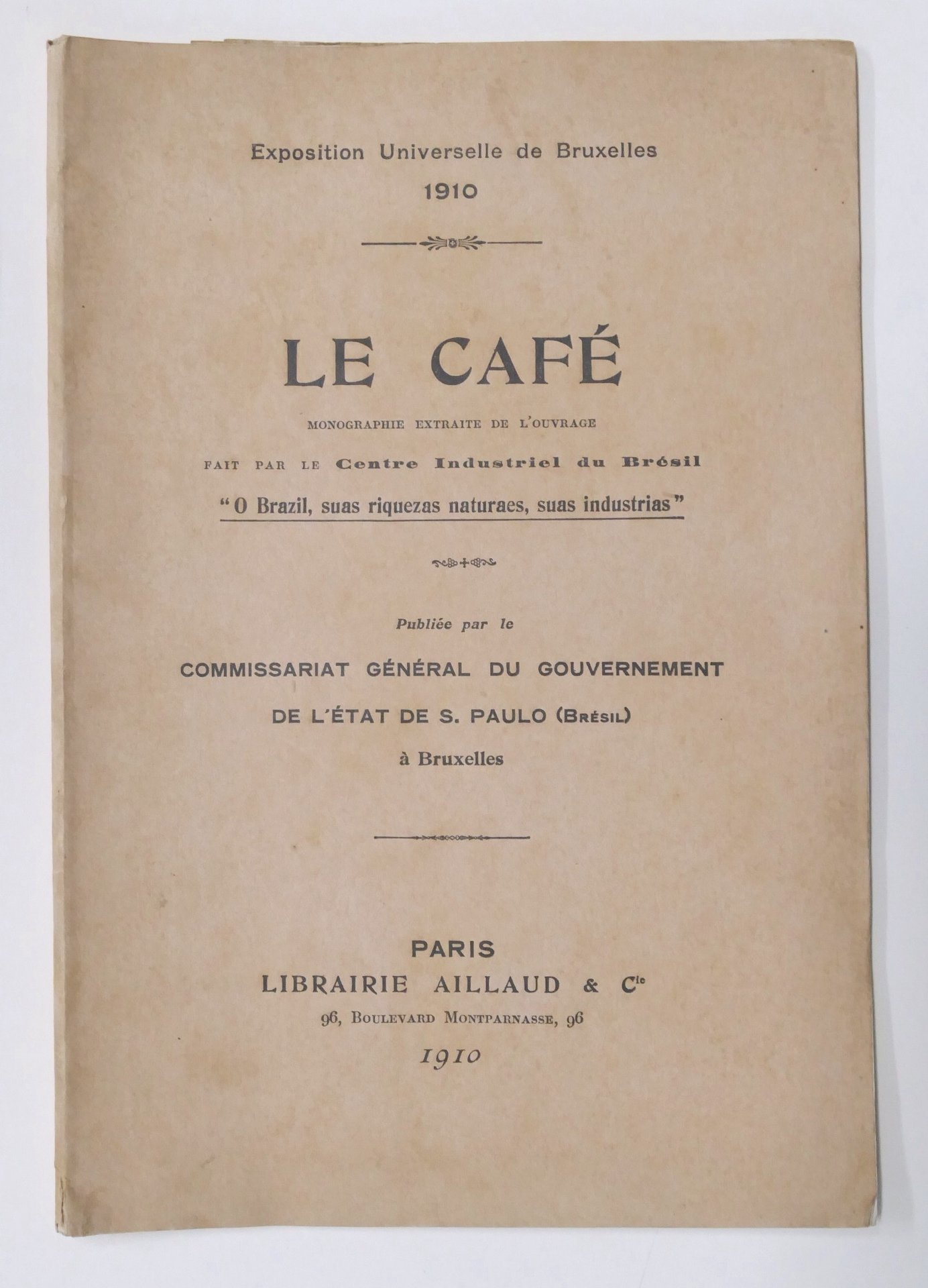 Exposition Universelle de Bruxelles - Le Cafè Monographie extraite de l'ouvrage fait par le de Centre Industriel du Bresil - ed. 1910 Pag. 52 con alcune illustrazioni e due carte ripiegate Copertina morbida - Testo in francese. Condizioni buone.