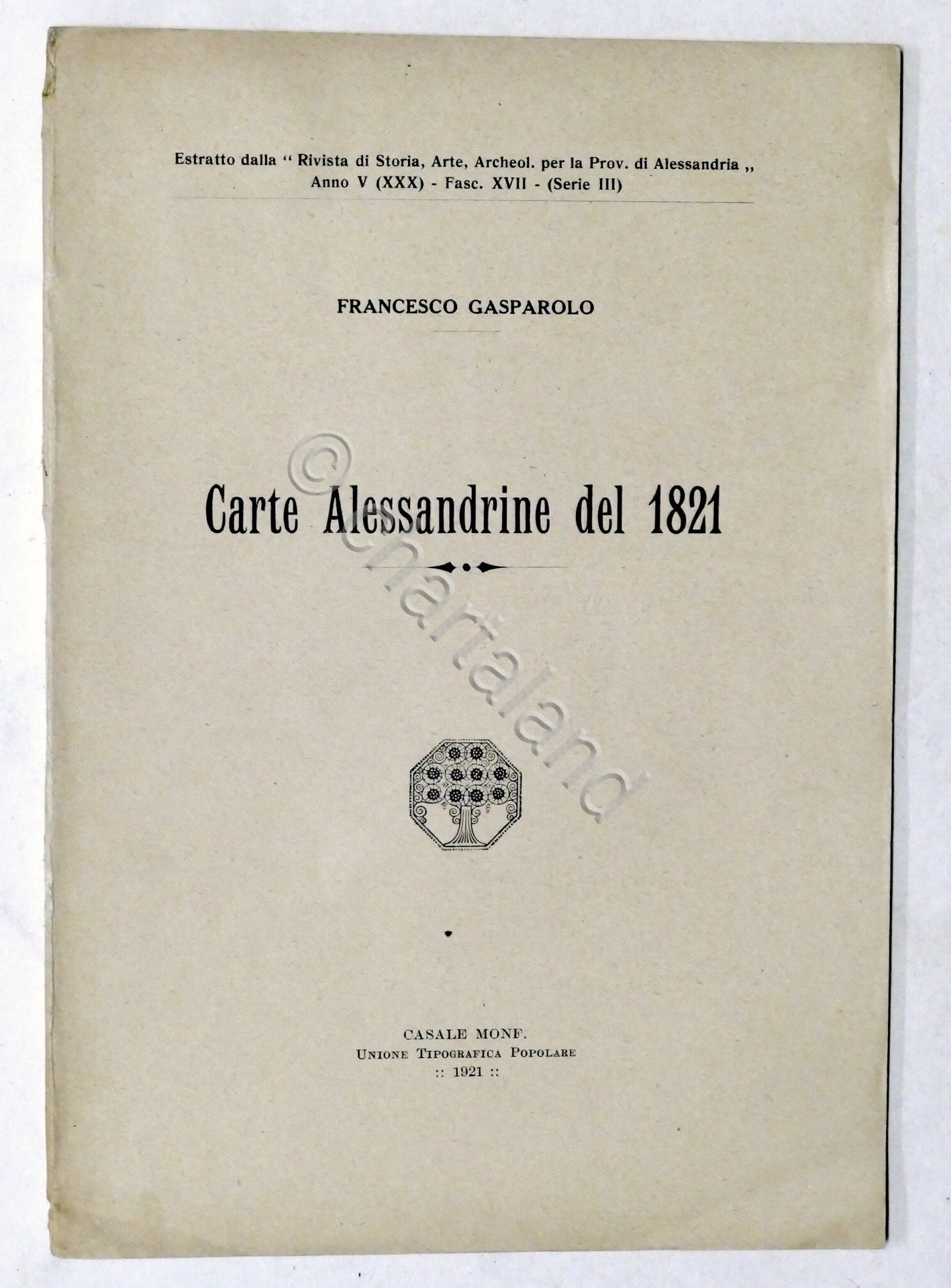 F. Gasparolo - Carte Alessandrine del 1821 - ed. 1921 | Libri antichi e moderni |