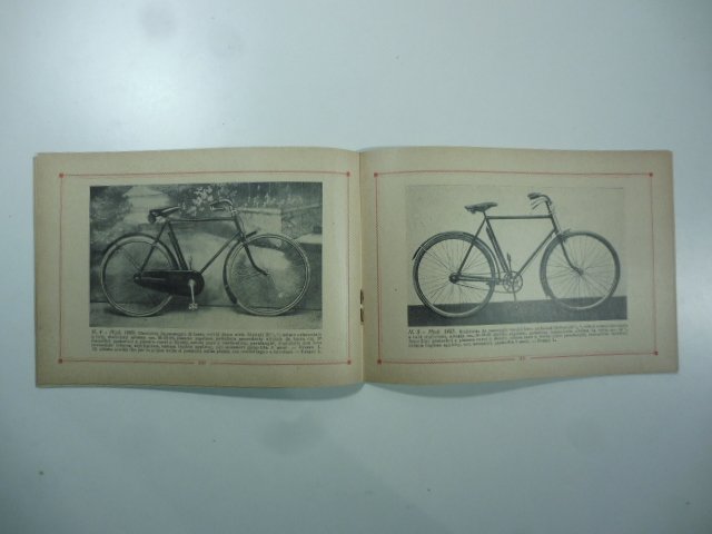 In 24 (cm 18,5 x 13), pp. 32. Brossura editoriale. Bel catalogo, molto raro, di questa ditta romana specializzata nella produzione di biciclette. Sono illustrati 7 modelli di biciclette. In apertura compaiono inoltre immagini delle officine, degli operai in fase di produzione (curvatura dei manubri, saldatura dei telai, telati pronti per la verniciatura.).
