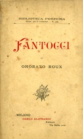 In-16°, pp. 96, (4), brossura editoriale con titolo in rosso e nero. Testatine ornate. Buon esemplare con usuali ingialliture. Edizione originale, vol. 26 della 'Biblioteca preziosa', di questa raccolta di varie prose d'invenzione del Roux (Perugia, 1859-1926), notissimo giornalista e poligrafo. Bibliografia Nazionale - 1896, 969.