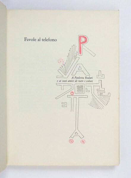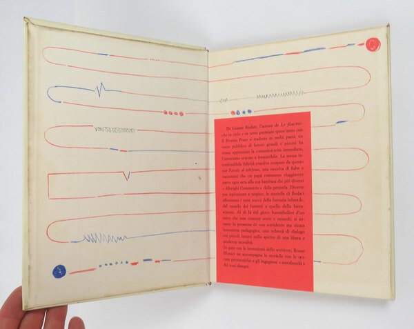 LIBRO Edizione originale. Secondo volume della serie per ragazzi Rodari-Munari, uscito d’appresso al primo e fortunatissimo «Filastrocche in cielo e in terra» (1960). Piuttosto raro in questa bella prima edizione datata 2 gennaio 1962 nel formato grande con copertina rigida (a partire dalle edizione degli anni settanta il titolo uscì con copertina paperback). «[.] per questo libro ho fatto dei disegni che sono nello stesso spirito di una favola al telefono, sono come quei disegni che si fanno mentre si telefona, un poco hanno riferimenti col contenuto, un’altra parte sono dei disegni inconsci» (Munari). Maffei, Munari i libri, p. 110 (erroneamente posposto al «Pianeta degli alberi di Natale»)