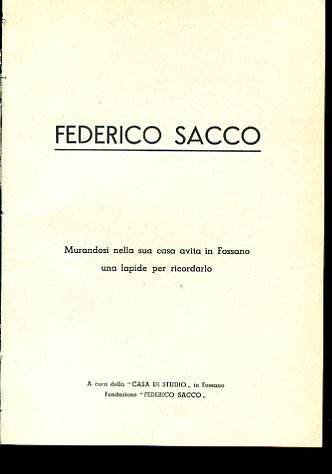 Federico Sacco. Murandosi nella sua casa avita in Fossano una lapide per ricordarlo. A cura della 'Casa di Studio' in Fossano. Fondazione 'Federico Sacco' | Libri antichi e moderni | Peretti Luigi - Gortani Michele - Pochettino Alfredo