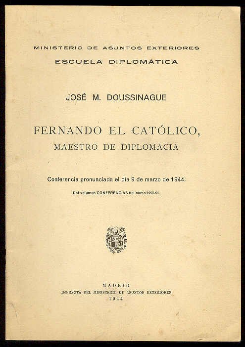 Fernando el Católico, maestro de diplomacia. (Conferencia pronunciada por. en la Escuela Diplomática, el 9 de marzo de 1944) | Libri antichi e moderni | Doussinague, José M.