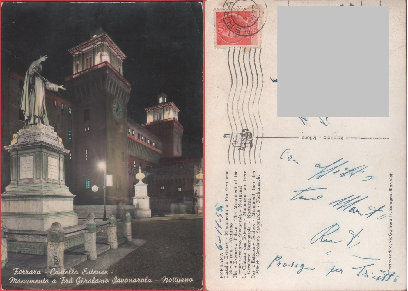 Ferrara. Castello Estense. Monumento a Savonarola. Viaggiata 1955 | Libri antichi e moderni | ,