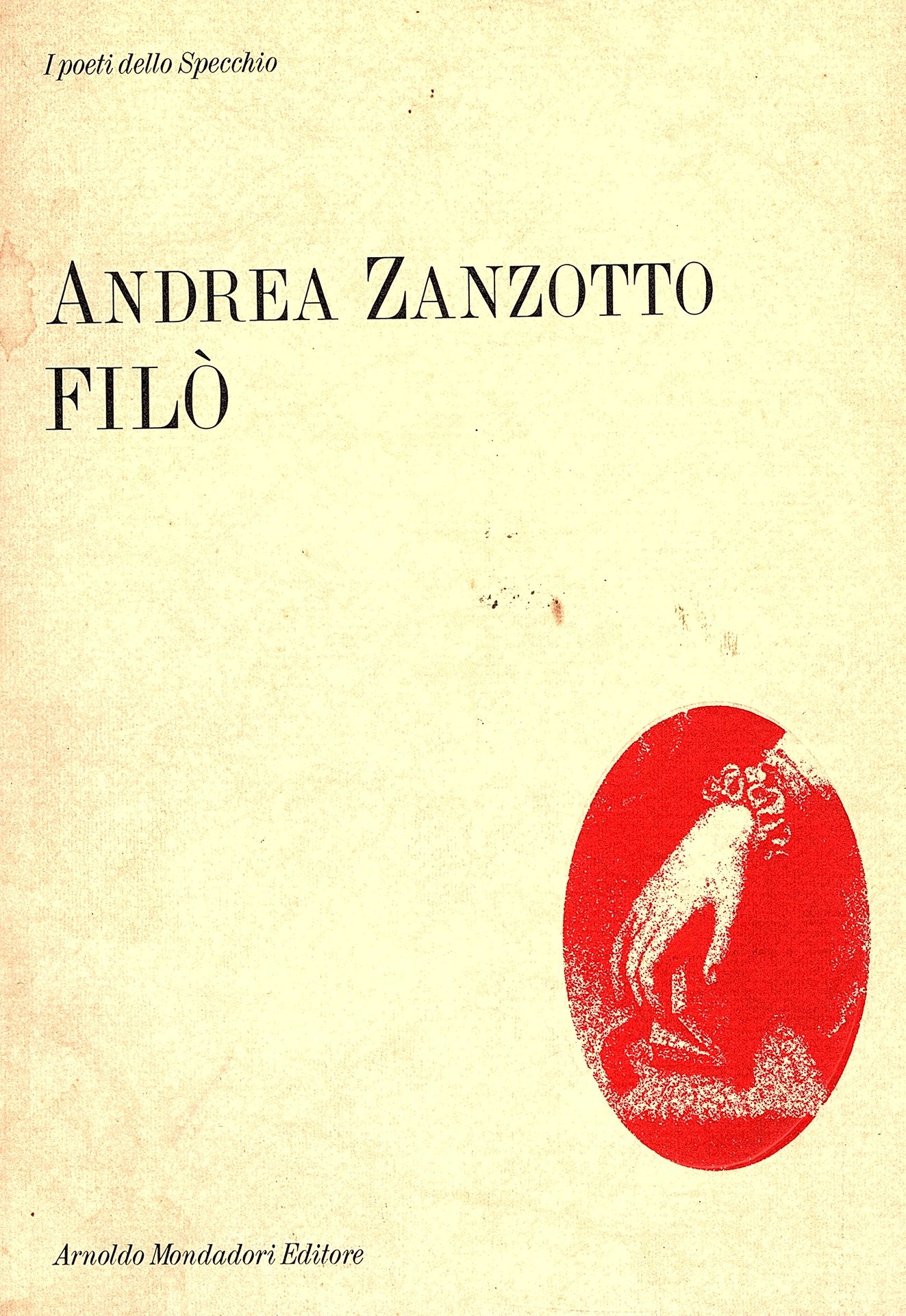 In-8°, (21.5 x 16 cm), pp.81 (7), brossura editoriale a risvolti paratestuali con stemma editoriale della collana dei Poeti dello Specchio, titoli in nero su fondo chiaro al piatto anteriore, in nero al dorso. Lieve imperfezione al piatto. Buon esemplare. Prima edizione della collana i Poeti dello Specchio.