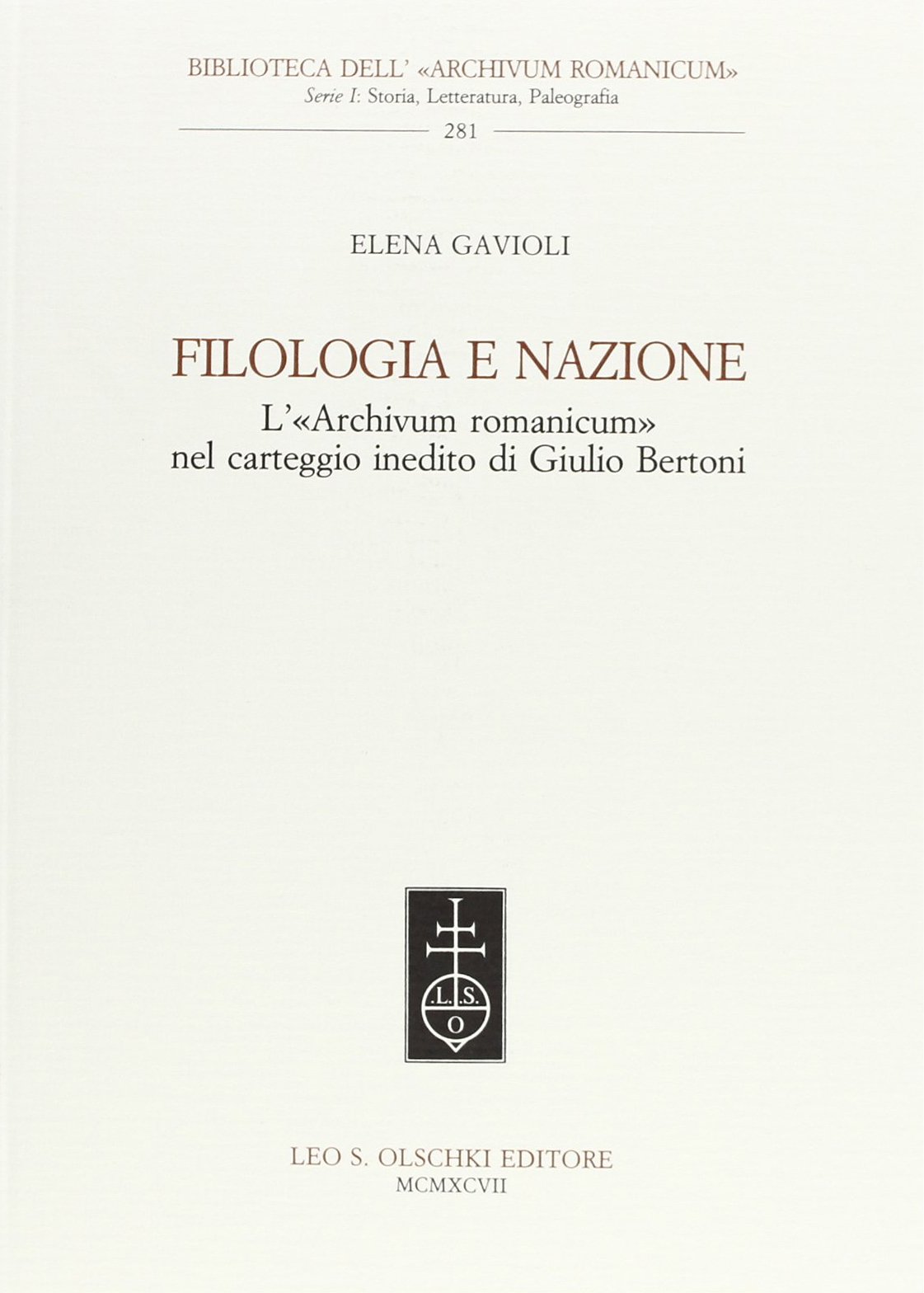 Filologia e nazione: l'"Archivum Romanicum" nel carteggio inedito di Giulio Bertoni, Firenze, Casa Editrice Leo S. Olschki, 1997 | Libri antichi e moderni | Gavioli Elena