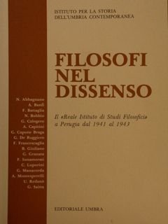 FILOSOFI NEL DISSENSO. Il 'Reale Istituto di Studi Filosofici' a Perugia dal 1941 al 1943. N. Abbagnano, A. Banfi, F. Battaglia, N. Bobbio, G. Calogero, A. Capitini, G. Capone Braga, G. De Ruggiero, F. Francescaglia, B. Giuliano, G. Granata, F. Innamorati, C. Luporini, G. Manacorda, A. Montesperelli, U. Redanò, G. Saitta.