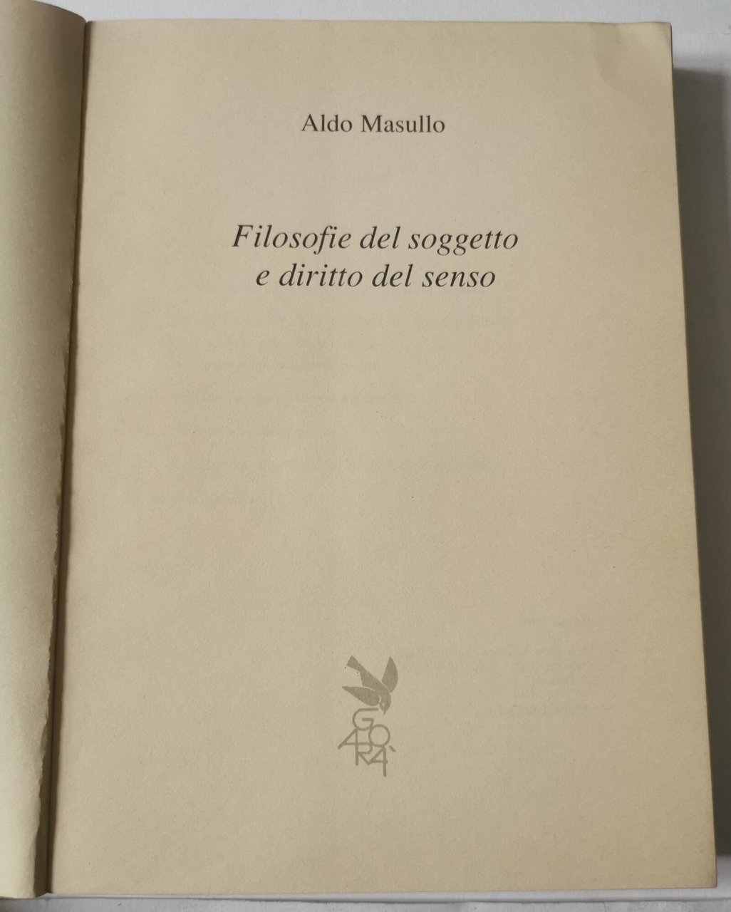 Filosofia del soggetto e diritto del senso | Libri antichi e moderni | Masullo, Aldo