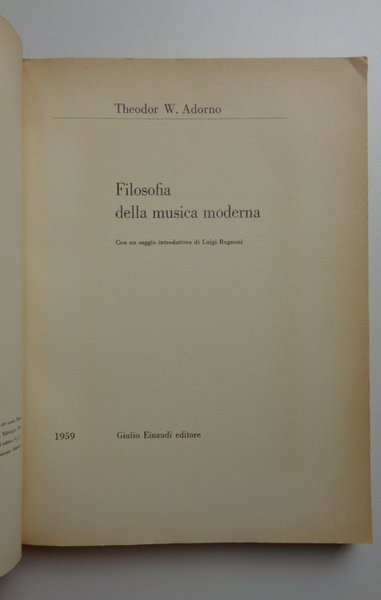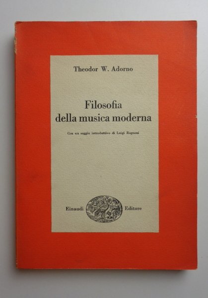 FILOSOFIA DELLA MUSICA MODERNA. Con un saggio introduttivo di Luigi Rognoni. | Libri antichi e moderni | Theodor W. Adorno