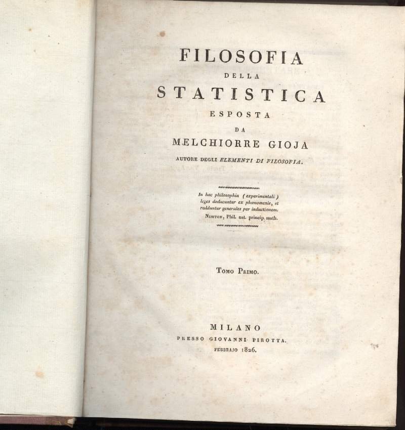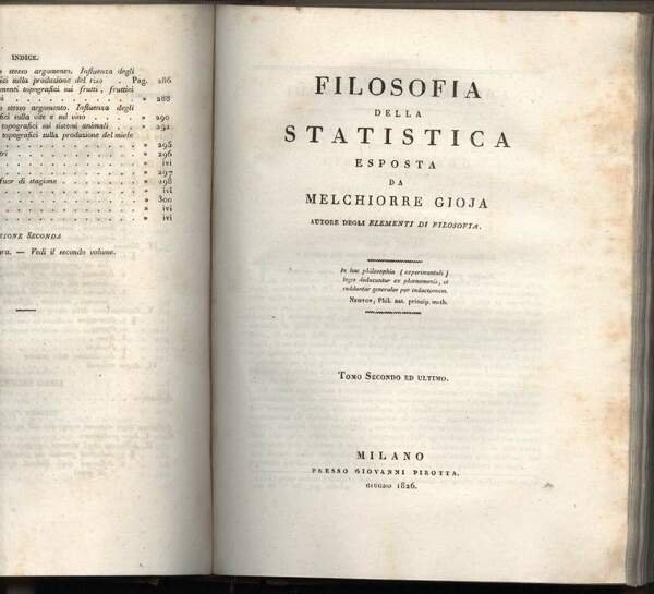 FILOSOFIA DELLA STATISTICA esposta da Melchiorre Gioja(1826) 2 tomi in unico vol.