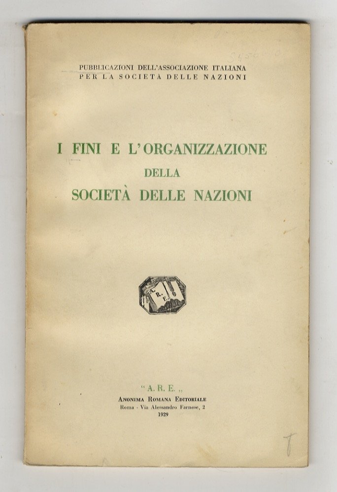 Roma, Anonima Romana Editoriale, 1929, in-8, br. editoriale, pp. 88. "Pubblicazioni dell'Associazione Italiana per la Società della Nazioni", IX. Ottimo esemplare.