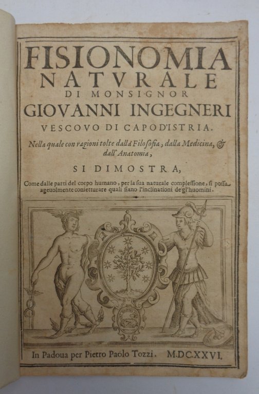 FISIONOMIA NATURALE. Nella quale con ragioni tolte dalla filosofia, dalla medicina, dall'anatomia, si dimostra, come dalle parti del corpo humano, per la sua naturale complessione, si possa agevolmente conietturare quali siano le inclinazioni degl'huomini | Libri antichi e moderni | Giovanni Ingegneri Vescovo Di Capodistria