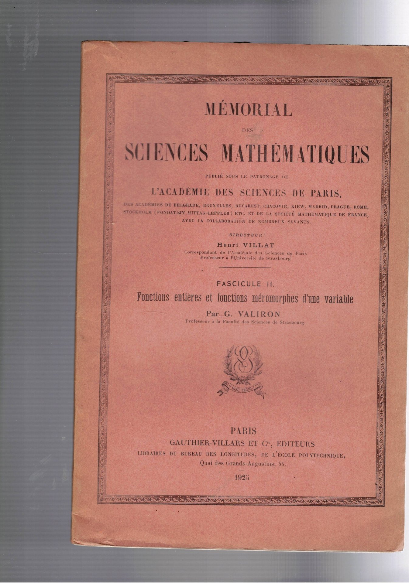 Fonctions entieres et fonctionsméromorphes d'une variable. fasc. 2° della serie. | Libri antichi e moderni | Valiron G.