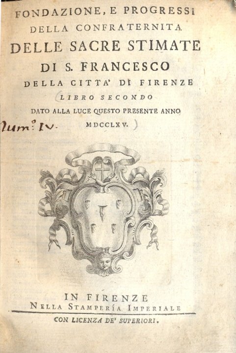 Fondazione e progressi della Confraternita delle Sacre Stimate di S. Francesco della città di Firenze. Libro secondo. | Libri antichi e moderni | Toscana - Aa.Vv.