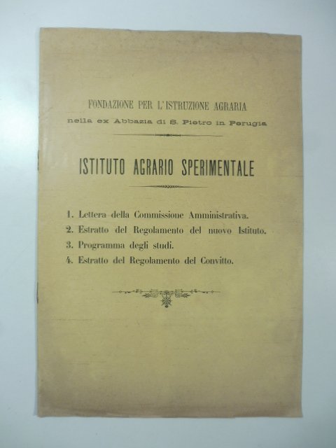 Fondazione per l'istruzione agraria nella ex Abbazia di S. Pietro in Perugia. Istituto Agrario Sperimentale