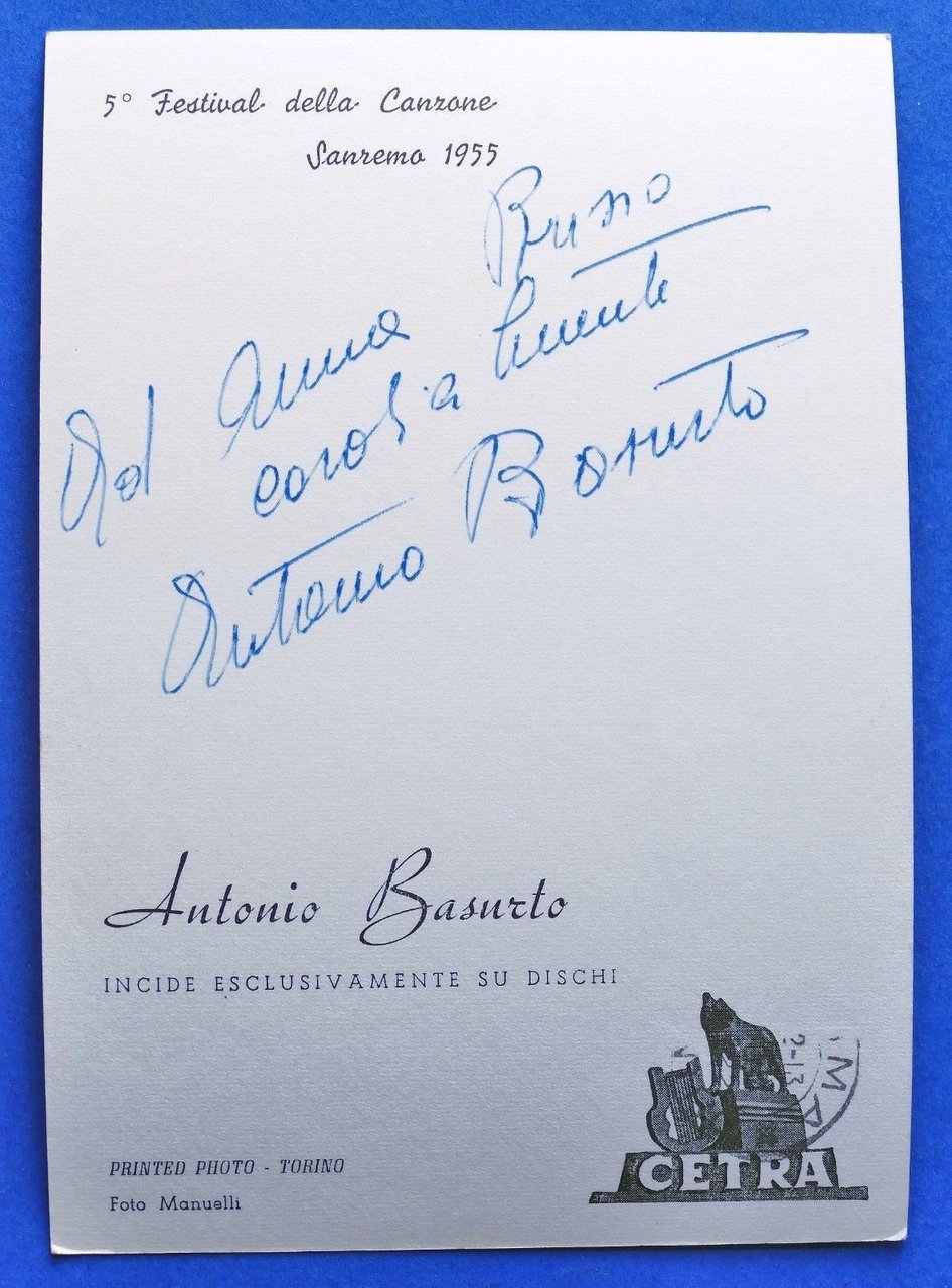 Fotocartolina Cetra con Autografo del cantante Antonio Basurto - 1955 | Libri antichi e moderni |
