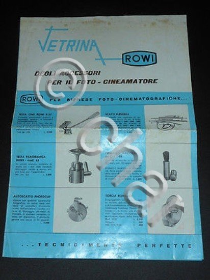 *** Fotografia Brochure - ROWI Vetrina degli accessori per il foto - cineamatore. Databile 1965 ca., foglio unico, ripiegato, stampato fronte-retro. Per appassionati, studiosi e collezionisti
