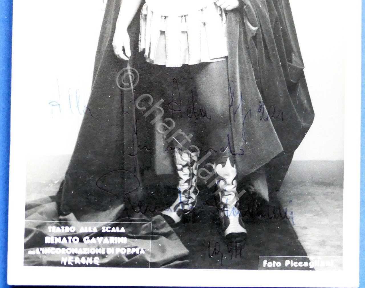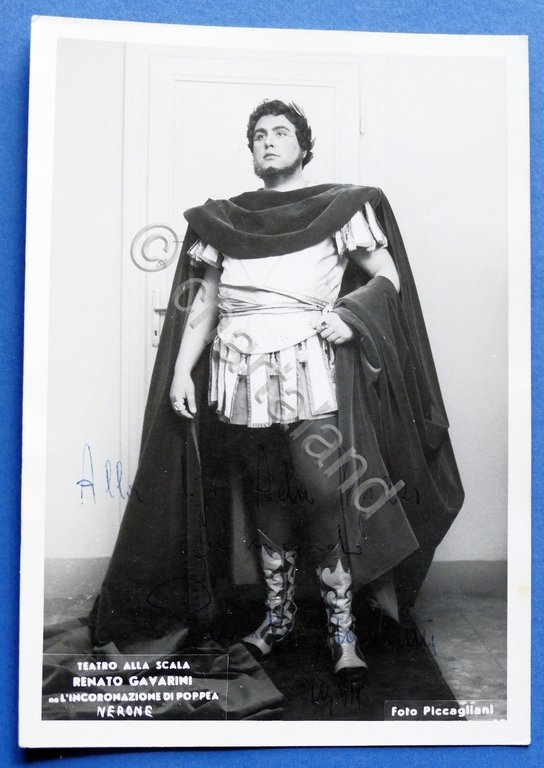 Fotografia con Autografo e dedica del cantante lirico Renato Gavarini - 1954 - Teatro alla Scala - L'incoronazione di Poppea - Nerone. Dimensioni 10,5 x 15 cm Per appassionati studiosi e collezionisti