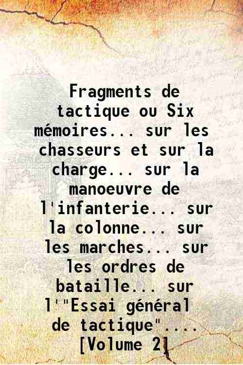 Fragments de tactique ou Six mÈmoires. sur les chasseurs et sur la charge. sur la manoeuvre de l'infanterie. sur la colonne. sur les marches. sur les ordres de bataille. sur l'"Essai gÈnÈral de tactique". [Volume 2] 1774