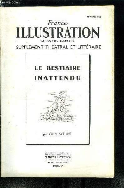 France illustration, le monde illustré, supplément théatral et littéraire n° 154 - Le bestiaire inattendu de Claude Aveline, illustrations par André Hubert | Libri antichi e moderni | Collectif