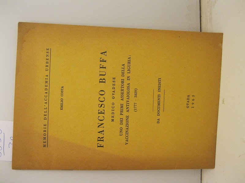 Francesco Buffa medico ovadese uno dei primi assertori della vaccinazione antivaiolosa in liguria (1777 - 1829). Da Documenti inediti | Libri antichi e moderni | Costa Emilio
