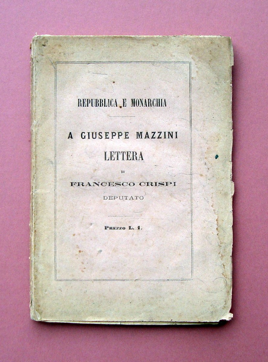 Francesco Crispi A Giuseppe Mazzini lettera Repubblica e Monarchia Torino 1865 | Libri antichi e moderni |
