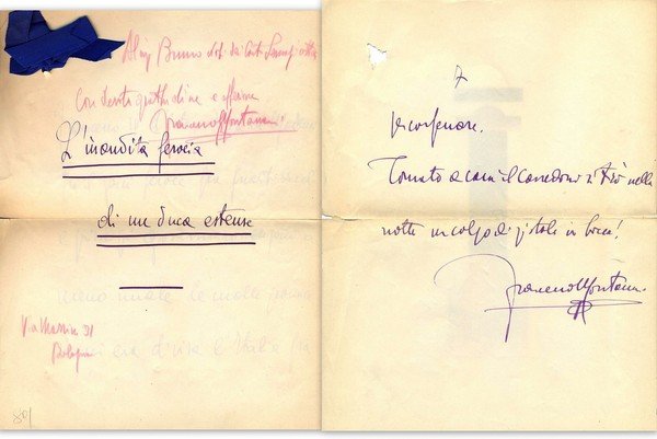 Francesco Montanari. L'Inaudita ferocia di un Duca Estense. Otto facciate manoscritte e firmate (l'ultima è staccata) riguardanti Ciro Menotti. Carta prima metà del '900. | Libri antichi e moderni | Montanari Francesco.