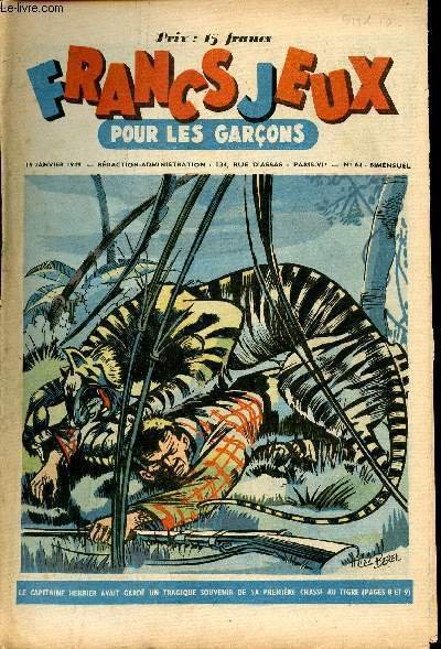Francs-Jeux pour les gar�ons - n� 64 - 15 janvier 1949 - Les 3 fugitifs par C�zard - Le roi des taupes et sa fille par Alexandre Dumas - L�zardette et Polochon - Suter, l'homme qui a livr� la guerre � l'or - Mon premier tigre par Max-Andr� Dazergues - Le | Libri antichi e moderni | Collectif