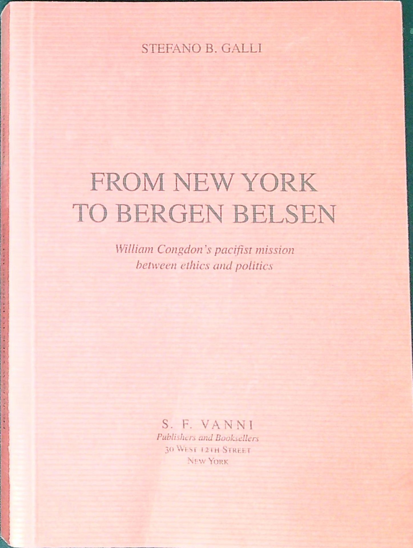 Galli, Stefano Bruno From New York to Bergen Belsen : Wiliam Congdon's pacifist mission between ethics and politics. New York, S. F. Vanni 2006, 17 238 p. 238 p., 8 c. di tav. : ill. ; 17 cm. (58065)