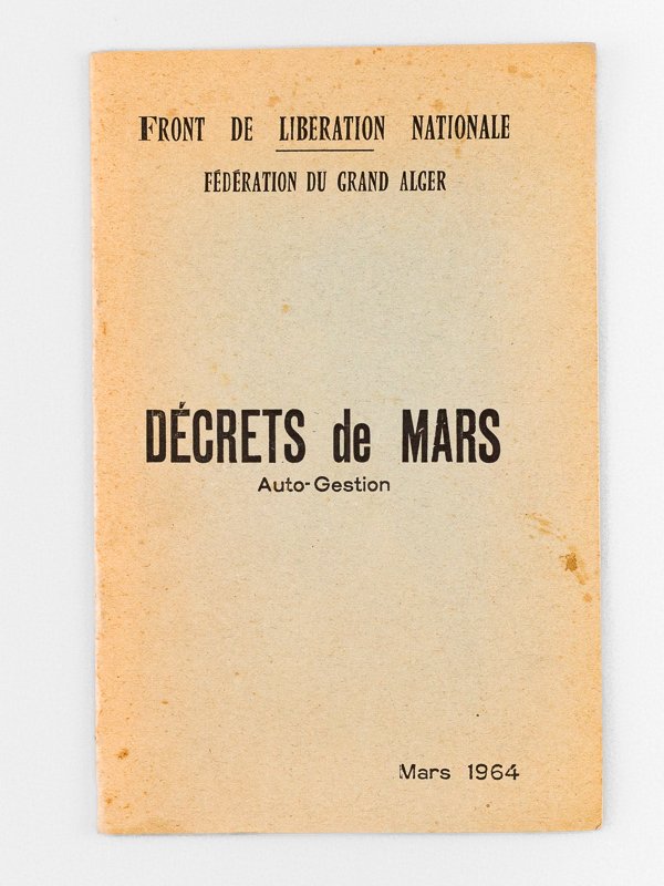 Front de Libération Nationale ; Fédération du Grand Alger. Décrets de Mars. Auto-Gestion. Mars 1964 | Libri antichi e moderni | Collectif, Front De Libération Nationale Fln, Fédération Du Grand Alger, Ben Bella, Ahmed