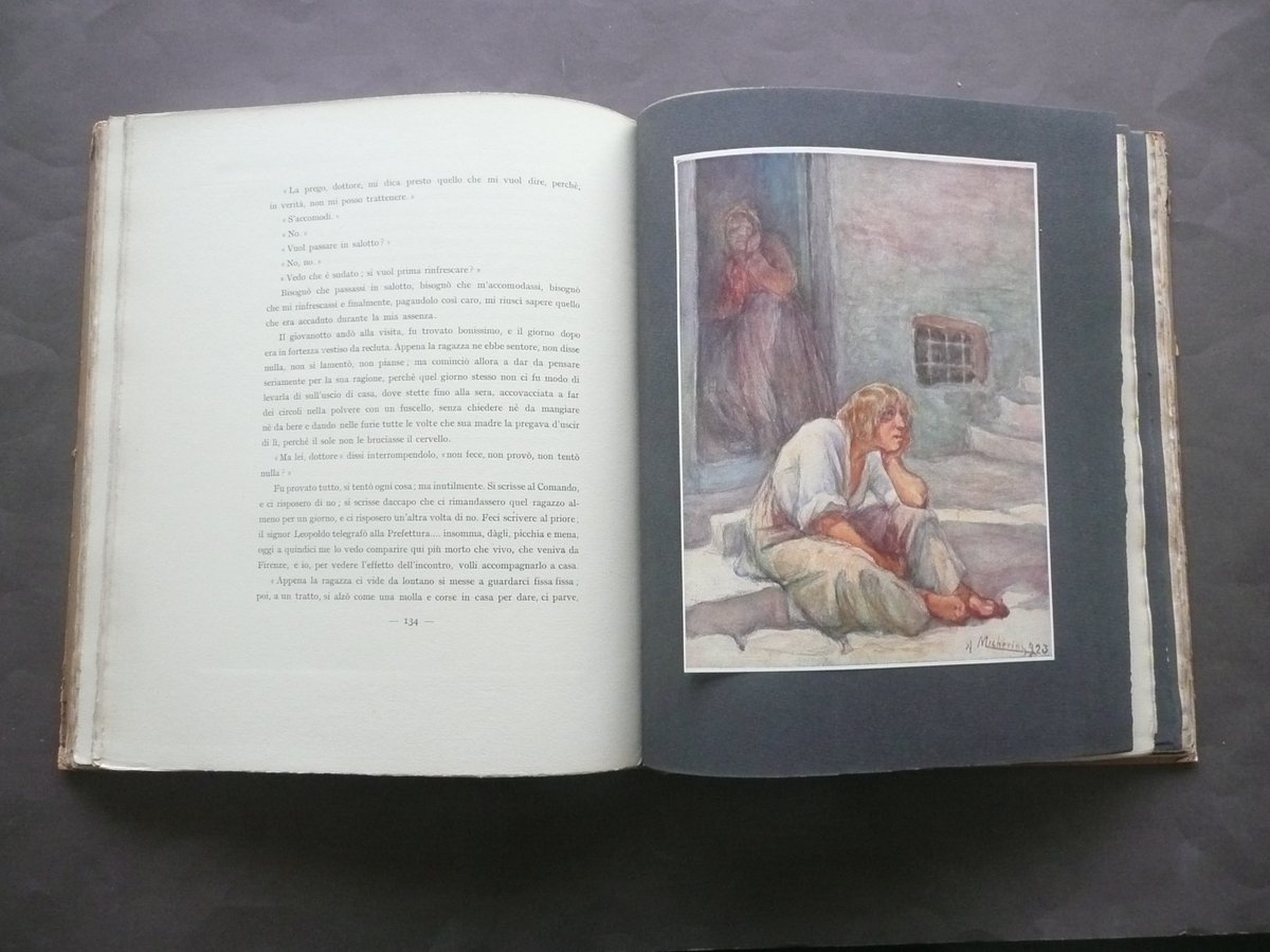 Fucini Renato, Le Veglie di Neri Alinari ed., Firenze, 1925; 31x26 cm., 184 pp. con ill. in b.n. n. t. e a col. f. t. incollate su cartoncino nero, ill. di A. Mecherini,carton. ed. con titoli anche al dorso. Condizioni di conservazione Esemplare con normali tracce d'uso e del tempo, macchiette ai piatti della coperta, minime abrasioni ai margini dei piatti, angoli arrotondati, interni molto buoni, alcuni margini rifilati, tagli delle pagine con barbe. MM0594/C3-109