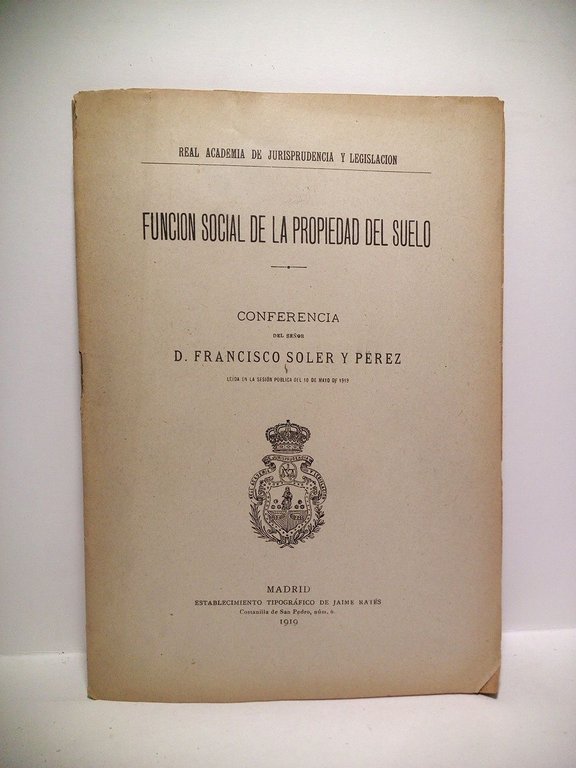 Función social de la propiedad del suelo. (Conferencia en la R. A. de Jurisprudencia y Legislación) | Libri antichi e moderni | Soler Y Perez, Francisco