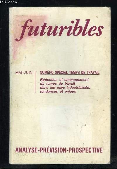 FUTURIBLES N° 165 - 166 MAI JUIN 1992. SOMMAIRE: TEMPS ET SOCIETE PAR HUGUES DE JOUVENEL, LE TEMPS DE TRAVAIL PAR FRIDENSON PATRICK, L EVOLUTION DU TEMPS DE TRAVAIL EN ALLEMAGNE, L ALLONGEMENT DU TEMPS DE TRAVAIL EN GRANDE BRETAGNE. | Libri antichi e moderni | Collectif.