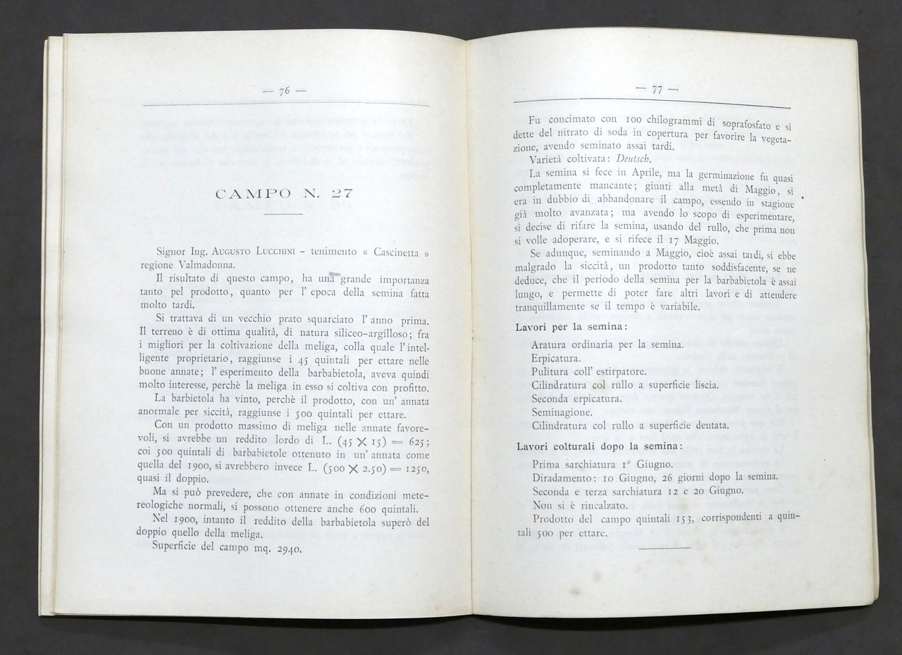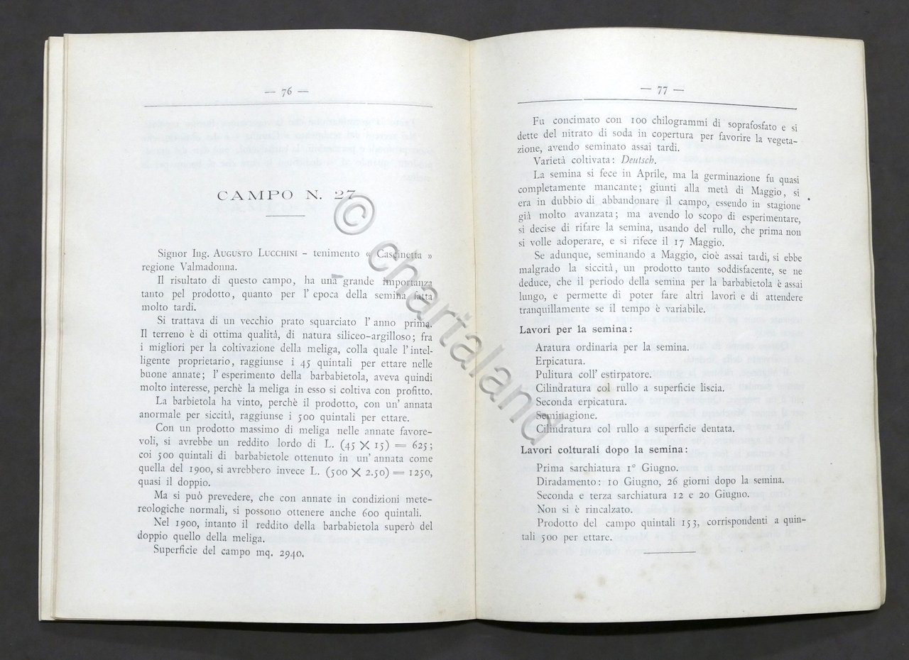 G. Bonzi - Coltivazione della barbabietola zuccherina - Campi esperimento - 1901