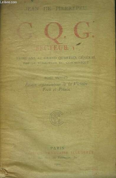 G.Q.G Secteur 1 trois ans Grand Quartier Général apr le rédacteur du comminuqué TOME Second. Pétain organisateur de la Victoire - Foch et Pétain. | Libri antichi e moderni | De Pierrefeu Jean