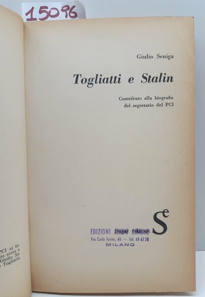 G. Seniga Togliatti e Stalin Edizioni Azione Comune 2∞ ed. 1961 autografato | Libri antichi e moderni | Guido Seniga