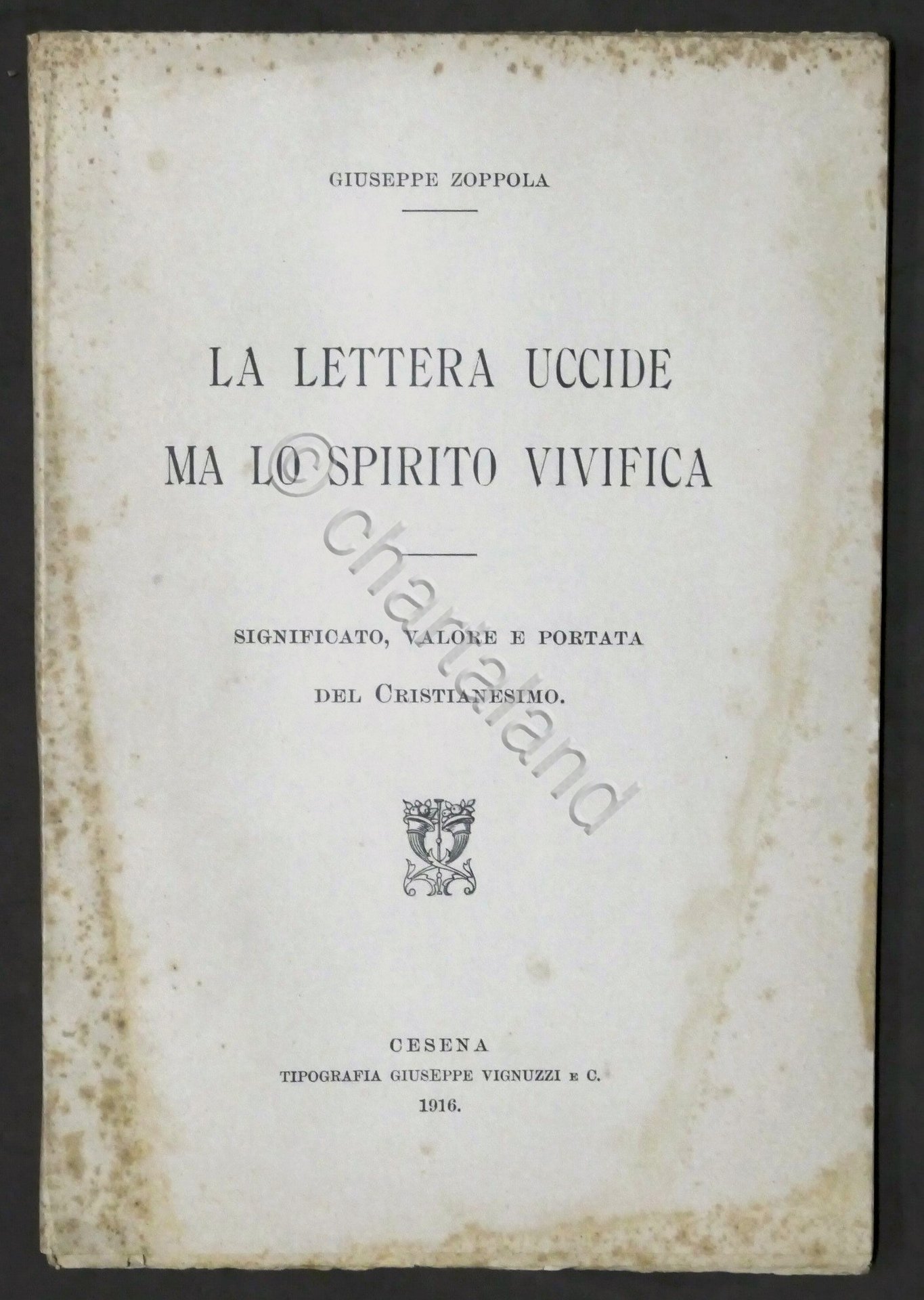 G. Zoppola - La lettera uccide ma lo spirito vivifica - 1916 | Libri antichi e moderni |