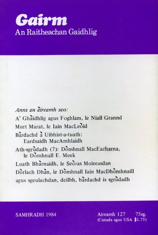 Gairm : An Raitheachan Gaidhlig : Summer 1984 - No 127