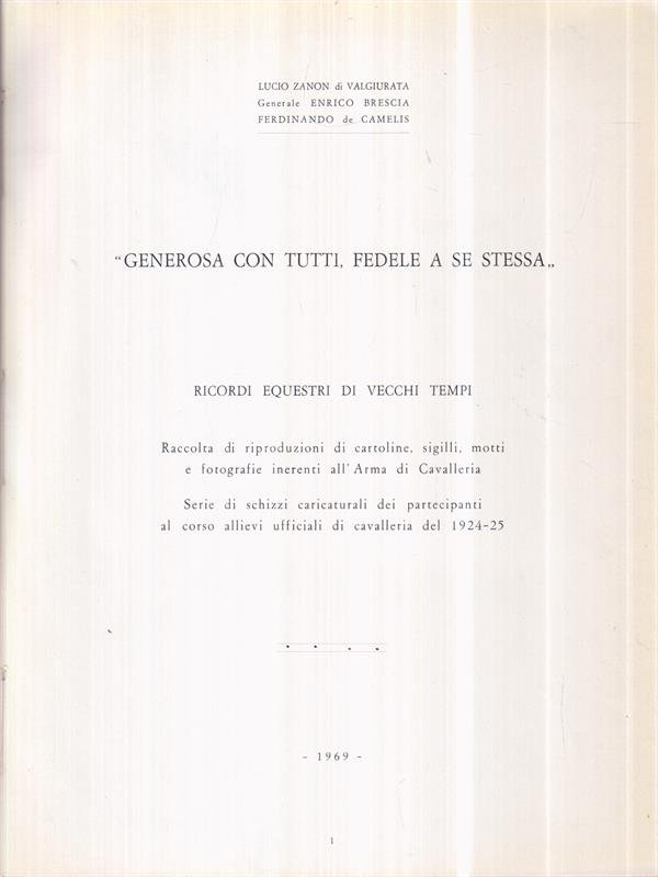 Generosa con tutti, fedele a se stessa. Ricordi equestri di vecchi tempi | Libri antichi e moderni | Zanon, L. - Brescia, E. - De Camelis, F.