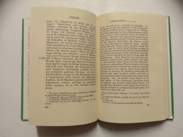 Un volume (17 cm) di 510 pagine, con 3 cartine ripiegate in fine. Testo in greco con traduzione a fronte in inglese. Indice in inglese. Tela editoriale con sovracoperta verde, nella collana Loeb Classical Library. Ottime condizioni.