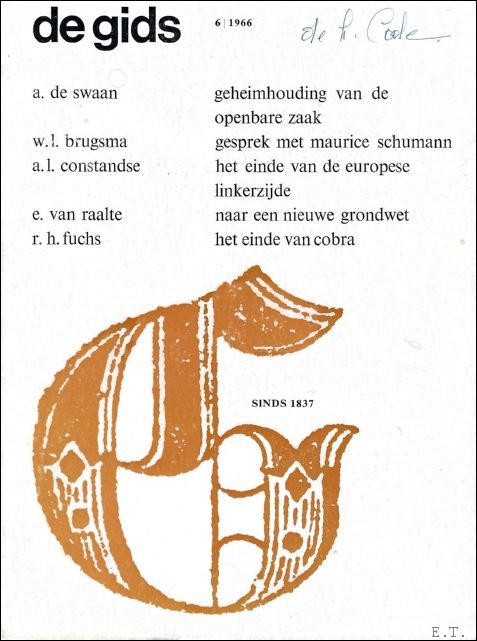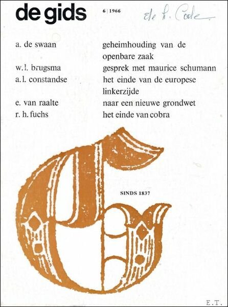 Originele geillustreerde uitgeversomslag, 18x24,5cm, 84pp. Jaargang 129, n? 6. A. De Swaan: Geheimhouding van de openbare zaak. W. L. Brugsma: Gesprek met Maurice Schuimann. A.L. Constandse: Het einde van de Europese linkerzijde. E. Van Raalte: Naar een nieuwe grondwet. R. H. Fuchs: Het einde van cobra.
